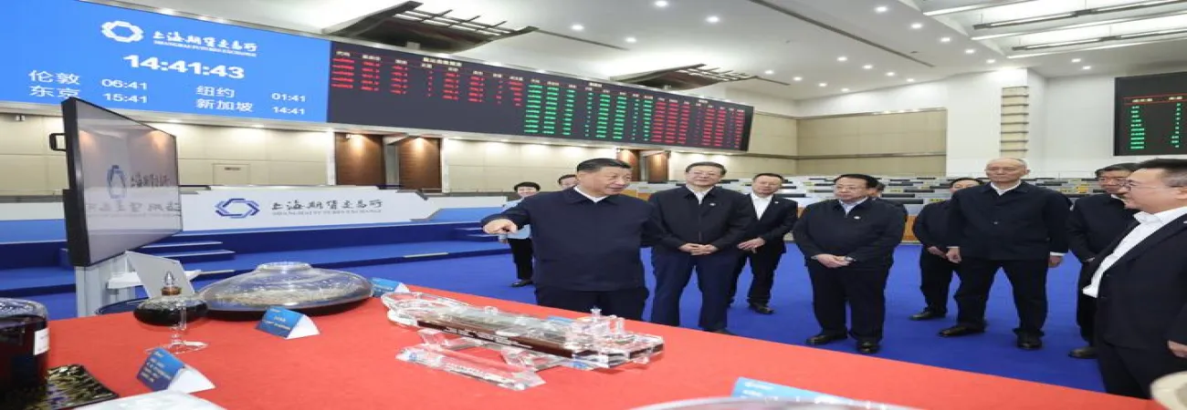چین ، مشرقی شہر شنگھائی میں چینی صدر، کمیونسٹ پارٹی آف چائنہ کی مرکزی کمیٹی کے جنرل سیکرٹری اور مرکزی فوجی کمیشن کے چیئرمین شی جن پھنگ شنگھائی فیوچر ایکسچینج کا معائنہ کر رہے ہیں۔ (شِںہوا)