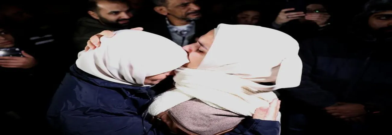مغربی کنارے کے شہر رام اللہ میں  رہا ہونے والی ایک خاتون فلسطینی قیدی اہلخانہ سے مل رہی ہے ۔ (شِںہوا)