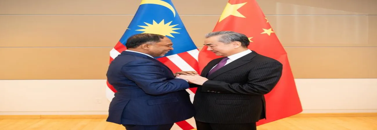چینی وزیر خارجہ وانگ یی نیویارک میں ملائیشیا کے وزیر خارجہ زیمبری عبدالقادر سے ملاقات کرتے ہوئے۔(شِنہوا)