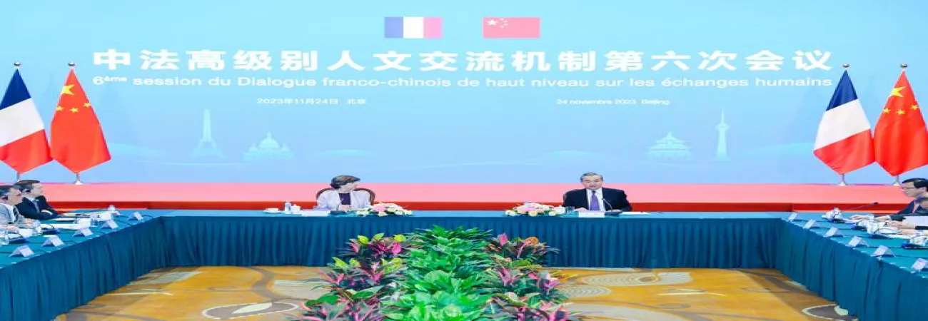 چین کے وزیر خارجہ وانگ یی اور فرانس کی وزیر برائے یورپ و خارجہ امور کیتھرین کولونا بیجنگ میں چین-فرانس اعلیٰ سطحی ڈائیلاگ میکانزم برائے عوامی تبادلوں کے چھٹے اجلاس کی مشترکہ صدارت کرتے ہوئے۔(شِنہوا)