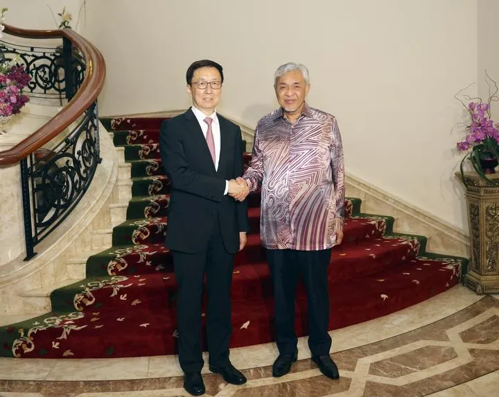 چینی نائب صدر ہان ژینگ نے ہفتہ کو اپنا ملائیشیا کا دورہ مکمل کرلیا۔ اپنے دورے کے دوران ہان نے کوالالمپور میں ملائیشیا کے سپریم ہیڈ سلطان عبداللہ سلطان احمد شاہ اور پتراجایا میں وزیر اعظم انور ابراہیم سے ملاقات کی۔ سلطان عبداللہ کے ساتھ ملاقات کے دوران ہان نے کہا کہ چین اور ملائیشیا، سمندر پار دوست ہمسایوں کے طور پر، دوستی کی ایک طویل تاریخ کے حامل ہیں اور یہ کہ چین مشترکہ طور پر ہم نصیب مستقبل کے ساتھ کمیونٹی کی تعمیر کے لیے معیاری بیلٹ اینڈ روڈ تعاون اور ملائیشیا کے ساتھ اعلیٰ سطح پر کام کرے گا اپنے متعلقہ قومی ترقیاتی منصوبوں پر عملدرآمد میں پیش رفت اور دونوں ممالک کے درمیان جامع اسٹریٹجک شراکت داری کو مستحکم کرے گا۔ چینی نائب صدر نے کہا کہ چین ہمسایہ ممالک کے ساتھ تعاون اور ملائیشیا سمیت جنوب مشرقی ایشیائی ممالک کی ایسوسی ایشن (آسیان) کے رکن ممالک کے ساتھ مختلف شعبوں میں عملی تعاون کو مضبوط بنانے کے لیے ہمیشہ تیار ہے تاکہ خطے میں پائیدار خوشحالی اور استحکام کو فروغ دیا جا سکے۔