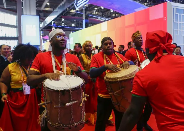 چین ، مشرقی شہر شنگھائی میں چھٹی چائنہ بین الاقوامی درآمدی نمائش (سی آئی آئی ای) میں ہنڈراس کے بوتھ میں فنکار فن کا مظاہرہ کررہے ہیں۔ (شِںہوا)