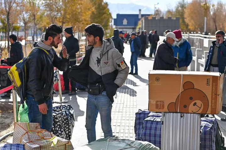 چین ، شمال مغربی سنکیانگ ویغورخود اختیار خطے کے تاشکورغان تاجک خود اختیار کاؤنٹی میں درہ خنجراب پر مسافروں کو دیکھا جاسکتا ہے۔ (شِںہوا)