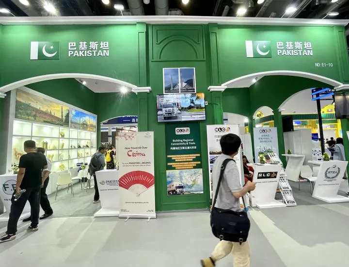 چائنہ انٹرنیشنل فیئر فار ٹریڈ ان سروسز (سی آئی ایف ٹی آئی ایس) میں پاکستان کے بوتھ کا منظر۔(شِنہوا)