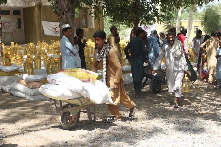 افغانستان، صوبہ ننگرہار میں افغان ہلال احمر سوسائٹی کی تقسیم کردہ غذائی امداد دیکھی جاسکتی ہے۔ (شِنہوا)