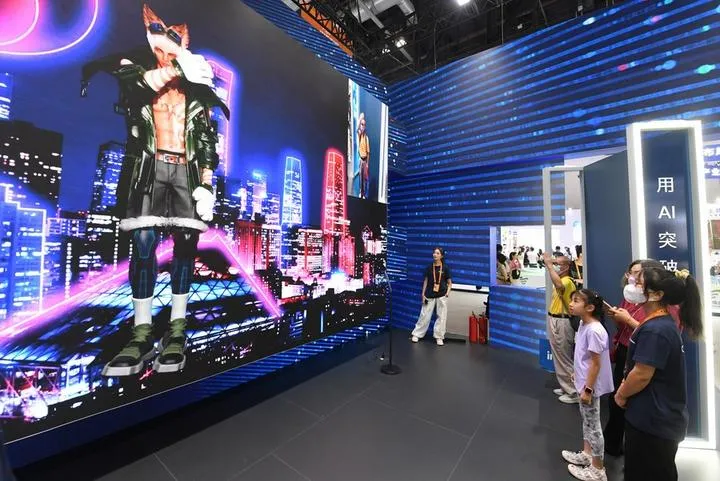 کمپنی کے بوتھ پر لوگ موبائل فون سے مصنوعی ذہانت (اے آئی) ماڈل کے ساتھ بات چیت کے لئے جمع ہوئے اور ا سے تصاویر بنانے کو کہا۔
