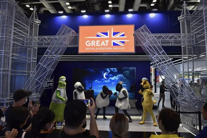 چین، دارالحکومت بیجنگ کے چائنہ نیشنل کنونشن سینٹر میں منعقدہ 2023 چائنہ بین الاقوامی میلہ برائے تجارتی خدمات میں لوگ برطانوی بوتھ میں ایک شو دیکھ رہے ہیں۔(شِںہوا)