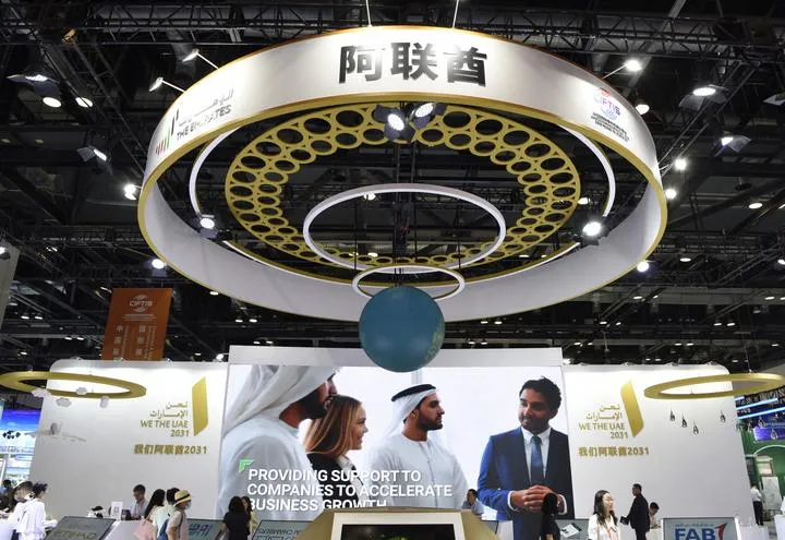 چین، دارالحکومت بیجنگ کے چائنہ نیشنل کنونشن سینٹر میں منعقدہ 2023 چائنہ بین الاقوامی میلہ برائے تجارتی خدمات میں لوگ متحدہ عرب امارات کے بوتھ کا دورہ کررہے ہیں۔ (شِںہوا)