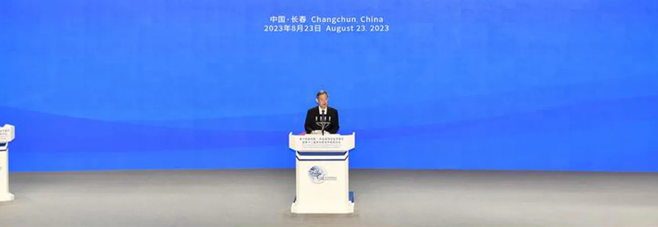 چین کی قومی عوامی کانگریس کی قائمہ کمیٹی کے نائب سربراہ ہاؤ منگ جن چین کے صوبہ جیلین کے دارالحکومت چھانگ چُھن میں 14ویں چائنہ-شمال مشرقی ایشیا ایکسپو کی افتتاحی تقریب سے خطاب کر رہے ہیں۔(شِنہوا)
