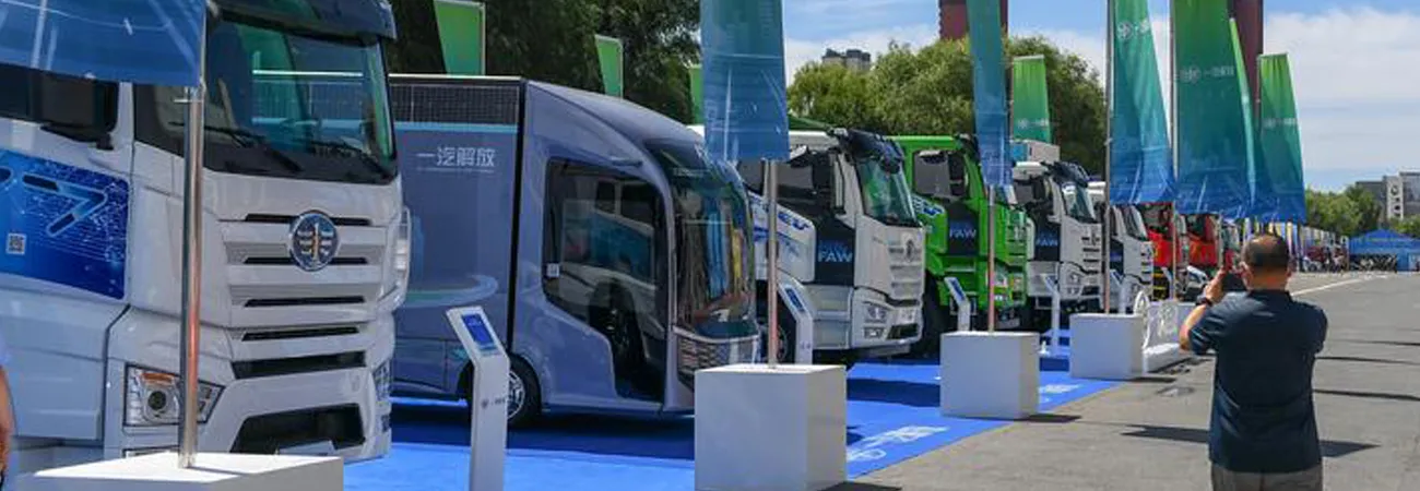 چین کےشمال مشرقی صوبہ جیلین کے شہرچھانگ چھن میں 14ویں چین-شمال مشرقی ایشیا ایکسپو کے دوران ایک شخص فا جی فانگ کی طرف سے پیش کردہ نئی توانائی والی گاڑیوں کی تصاویر لے رہا ہے۔(شِنہوا)