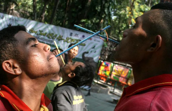 انڈونیشیا کے مشرقی جاوا کےعلاقےسورابایا میں 78 ویں یوم آزادی کے جشن میں لوگ ربڑ ریلے گیم میں حصہ لے رہے ہیں۔(شِنہوا)