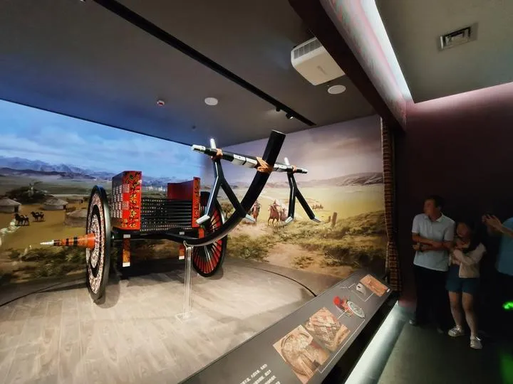 چین، شمال مغربی صوبہ گانسو کے علاقے ژانگ جیا چھوان کی ہوئی خوداختیار کاؤنٹی میں واقع ماجیایوآن رتھ میوزیم میں نمائش کے لیے رکھی گئی قدیم رتھوں کی نقلیں دیکھی جاسکتی ہیں ۔ (شِنہوا)