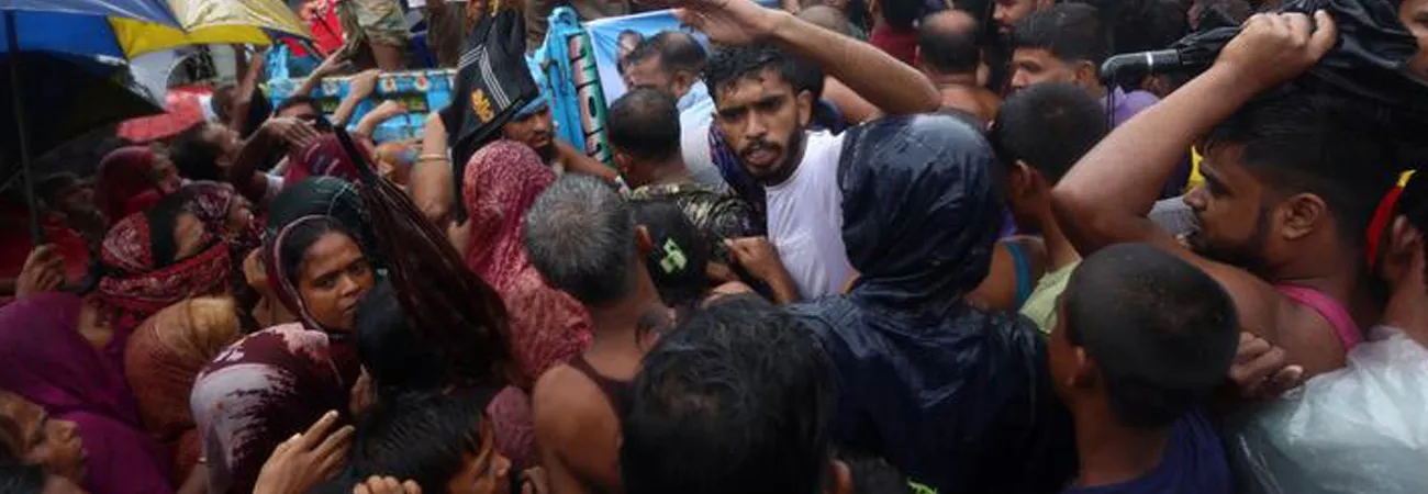 بنگلہ دیش کے شہرچٹوگرام میں سیلاب سے متاثرہ علاقے میں لوگ امدادی سامان حاصل کرنے کے لیے چھینا جھپٹی کر رہے ہیں۔(شِنہوا)