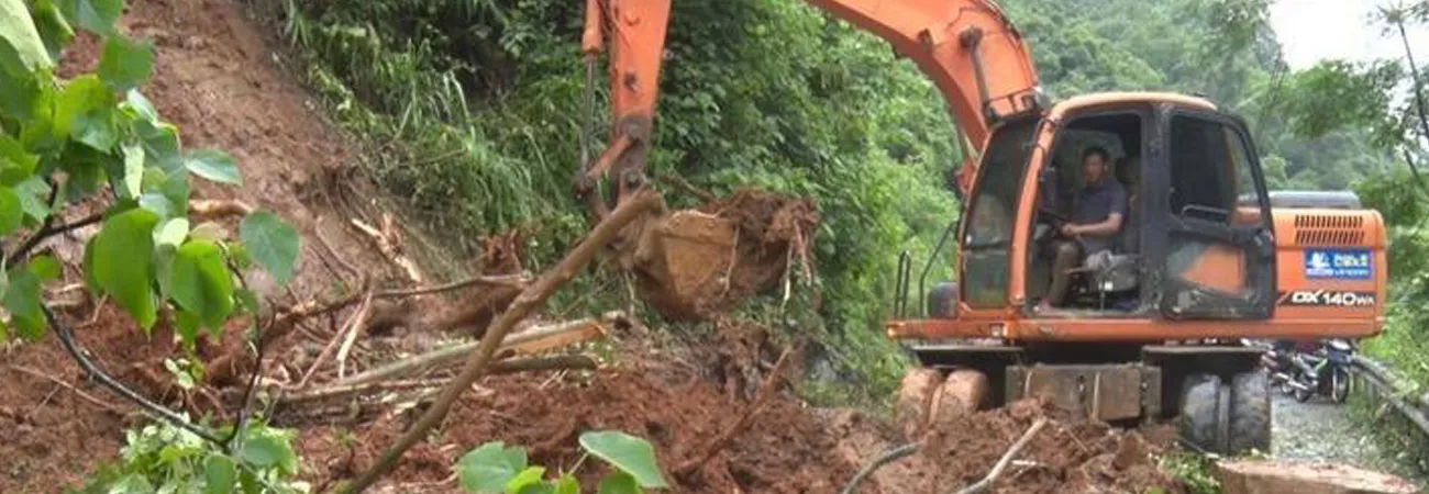 ویتنام کے صوبے کاو بنگ میں ایک کھدائی کرنے والی مشین سڑک  صاف کر رہی ہے جہاں طویل موسلا دھار بارشوں کے نتیجے میں مٹی کے تودے گرنے اور سیلاب کے باعث مزید تین ہلاکتیں ہوئیں جس سے ہلاکتوں کی مجموعی تعداد 11 ہو گئی ہے۔(شِنہوا)