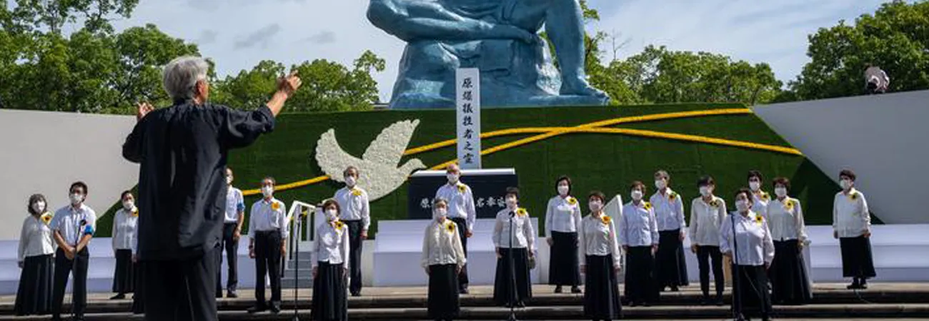 شہر کےمیئر شیرو سوزوکی نے اپنے امن اعلامیے میں جوہری دفاع کے اصولوں کے خلاف بات  کرتے ہوئے کہا کہ اب وقت آ گیا ہے کہ ہم ہمت کا مظاہرہ کریں اور جوہری دفاع پر انحصار سے آزاد ہونے کا فیصلہ کریں۔ انہوں نے کہا کہ میں آپ سے اپیل کرتا ہوں کہ انسانیت کی سلامتی کے تصورکی بنیاد پر جوہری ہتھیاروں کو مذاکرات کے ذریعے ختم کرنے کے راستے پر ثابت قدمی سے آگے بڑھیں اورمحاذ آرائی  سے اجتناب کریں۔