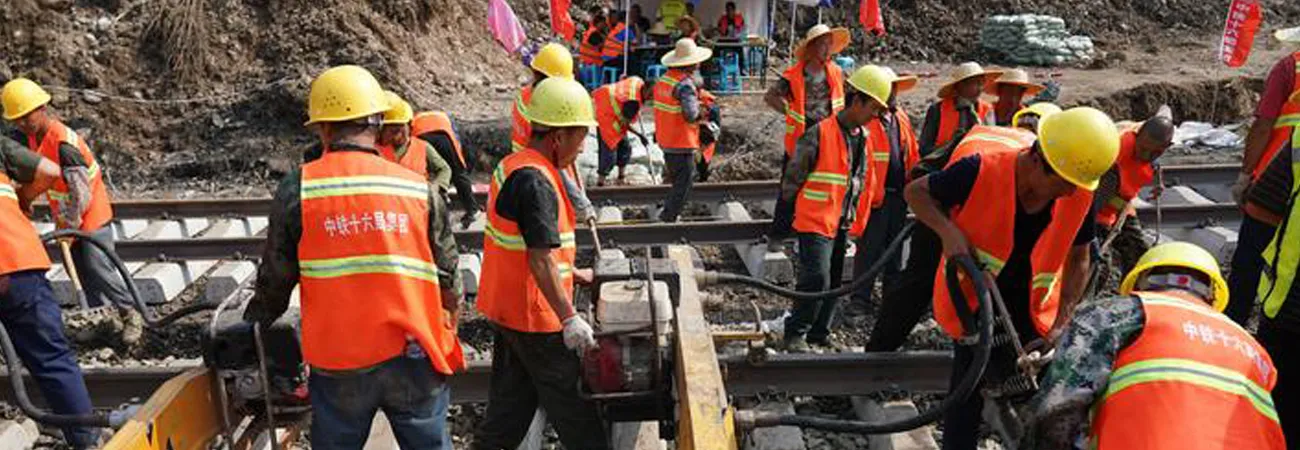 چین ، دارالحکومت بیجنگ میں عملہ فینگ تائی-شا چھینگ ریلوے کے سیلاب سے تباہ شدہ حصے کی مرمت کررہا ہے۔ (شِنہوا)