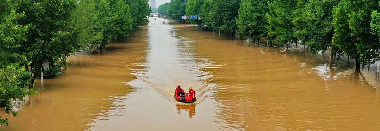 چین کے شمالی صوبے ہیبی کے شہرژوژو میں امدادی کارکن سیلاب میں پھنسے لوگوں کومنتقل کرنےجارہے ہیں جہاں طوفانی بارشوں کے باعث نو افراد ہلاک اورچھ لاپتہ ہیں۔(شِنہوا)