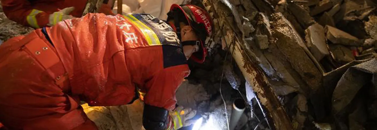 چین کے شمال مشرقی صوبہ حئی لونگ جیانگ کے چھی چھی ہارمیں مڈل سکول کے منہدم ہونے والے جمنازیم کی جگہ پرامدادی کارکن کام کر رہے ہیں جہاں چھت گرنے سے گیارہ افراد ہلاک ہو گئے۔(شِنہوا)