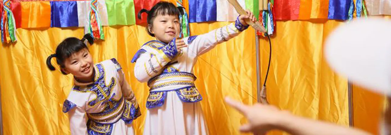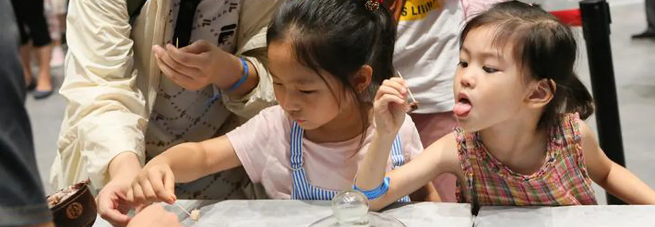چین ، مشرقی شہر شنگھائی کے من ہانگ عجائب گھر میں منعقدہ رات کے میلے میں بچے منگولیا کی روایت سے آگاہی حاصل کرنے کے لئے منگولیا کے پکوان کا ذائقہ چکھ رہے ہیں۔ (شِنہوا)