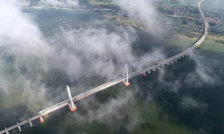 چین کے جنوبی صوبہ گوانگ ڈونگ کے شہر ژان جیانگ میں زیر تعمیربڑا لوژہو  پل دیکھا جا سکتا ہے جس کی کل لمبائی 562 میٹر ہے۔(شِنہوا)
