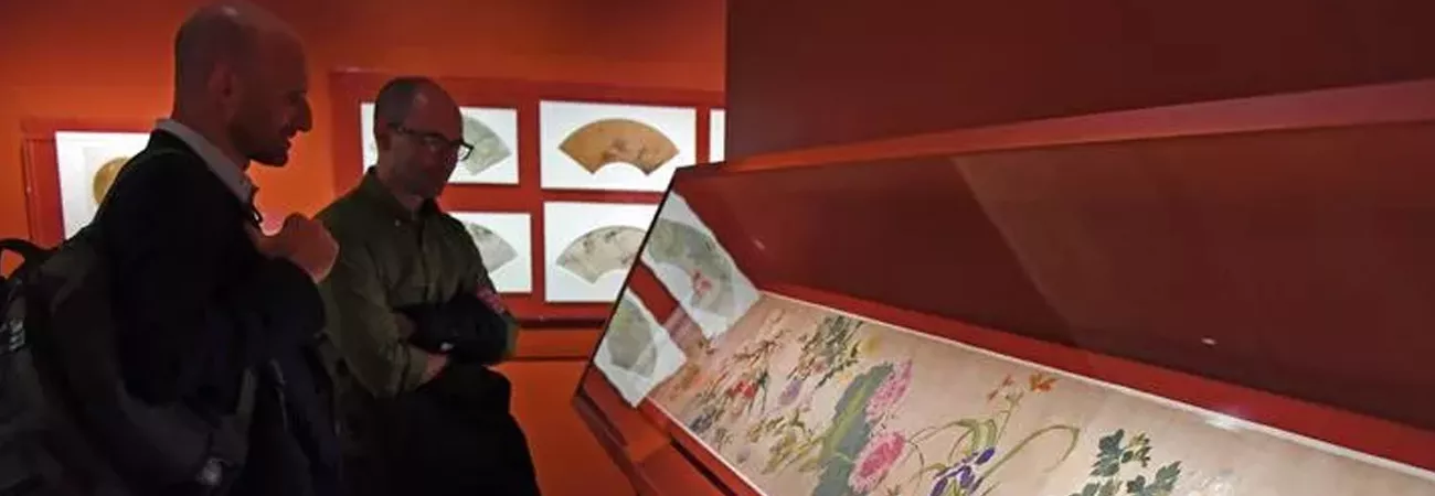 امریکی ریاست نیویارک میں چائنہ انسٹی ٹیوٹ گیلری میں منعقدہ نمائش میں  لوگ مصوری کا ایک فن پارہ دیکھ رہے ہیں۔(شِنہوا)