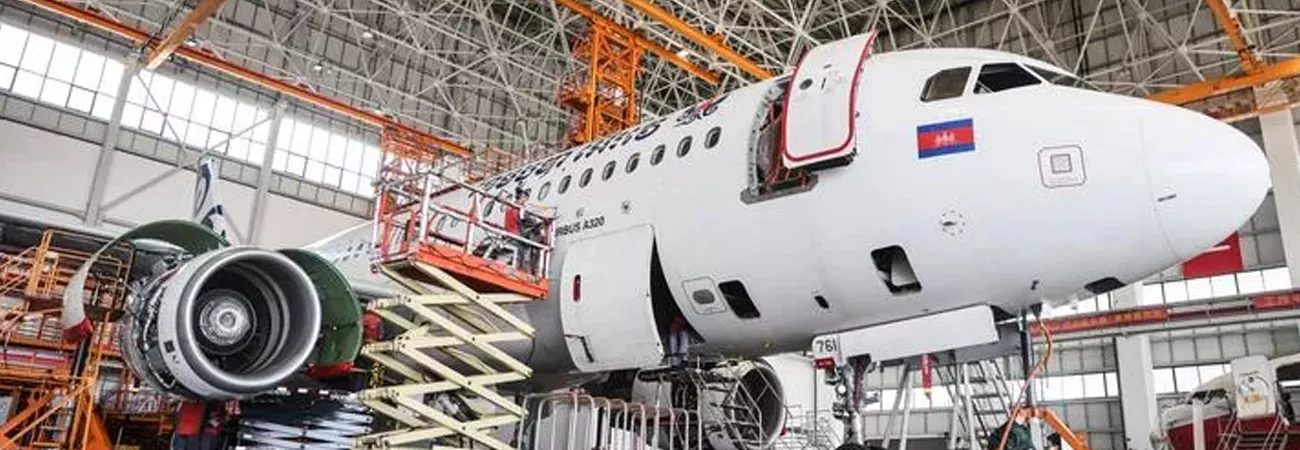 گرینڈ چائنہ ایوی ایشن مینٹیننس کمپنی لمیٹڈ (جی سی اے ایم) کے کارکن چین کے جنوبی صوبہ ہائی نان کے دارالحکومت ہائیکو میں کمبوڈیا ایئرویز کے ایک ایئربس اے320 کی مرمت کر رہے ہیں۔(شِنہوا)