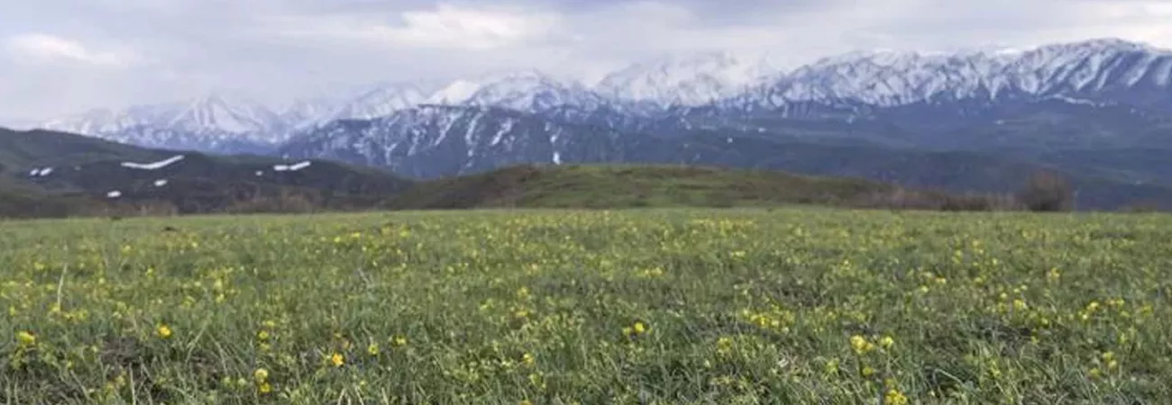 چین ، شمال مغربی سنکیانگ ویغور خوداختیار خطے کی کاؤنٹی یومن کے بارلک پہاڑی علاقے میں کھلتے پھول دیکھے جاسکتے ہیں۔ (شِںہوا)