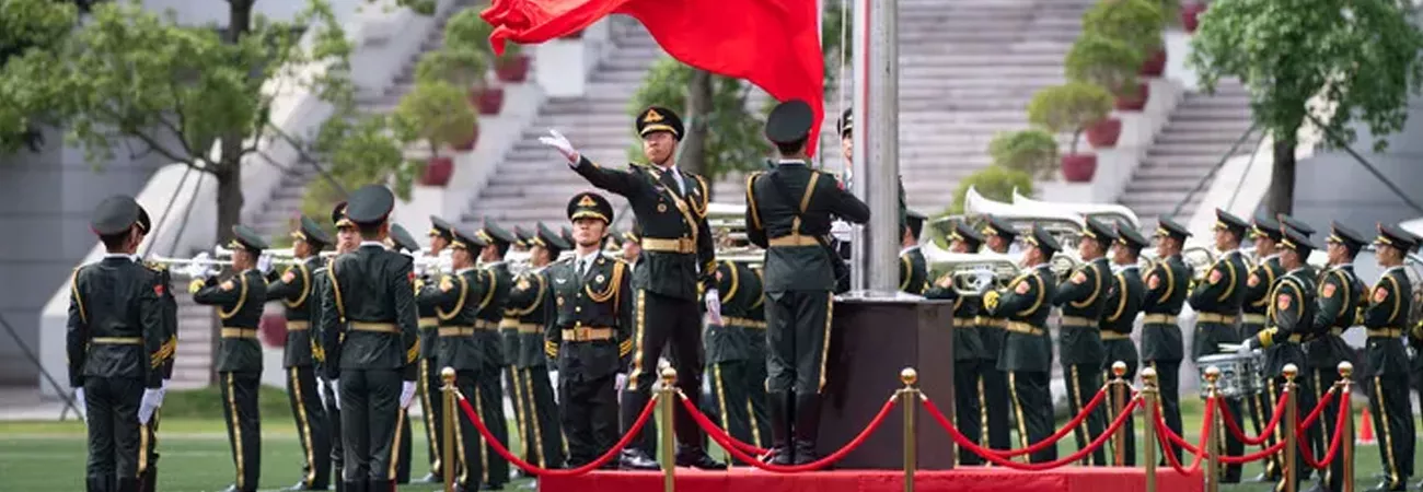 چین کے مکاؤ خصوصی انتظامی علاقےمیں تائیپا جزیرے پر تعینات چین کی پیپلز لبریشن آرمی گیریژن کے سپاہی بیرکوں میں اوپن ڈے کی تقریبات کے موقع پرقومی پرچم لہرانے کی ایک تقریب میں شریک ہیں۔(شِنہوا)