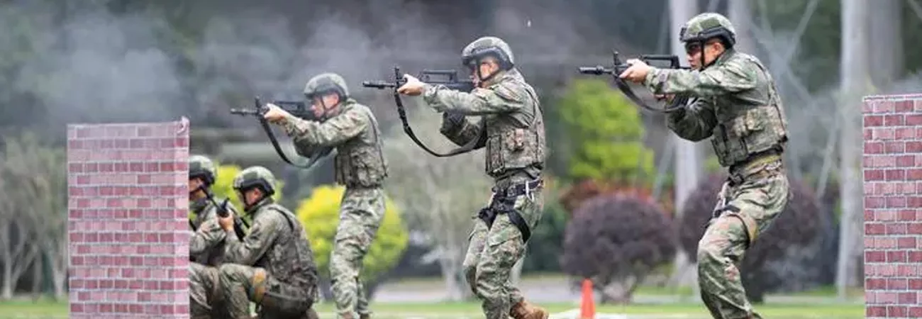 چین کے مکاؤ خصوصی انتظامی علاقے میں تائیپا جزیرے پر تعینات چین کی پیپلز لبریشن آرمی گیریژن کے سپاہی بیرکوں میں اوپن ڈے کی تقریبات کے موقع پرفوجی مشقیں کر رہے ہیں۔(شِنہوا)