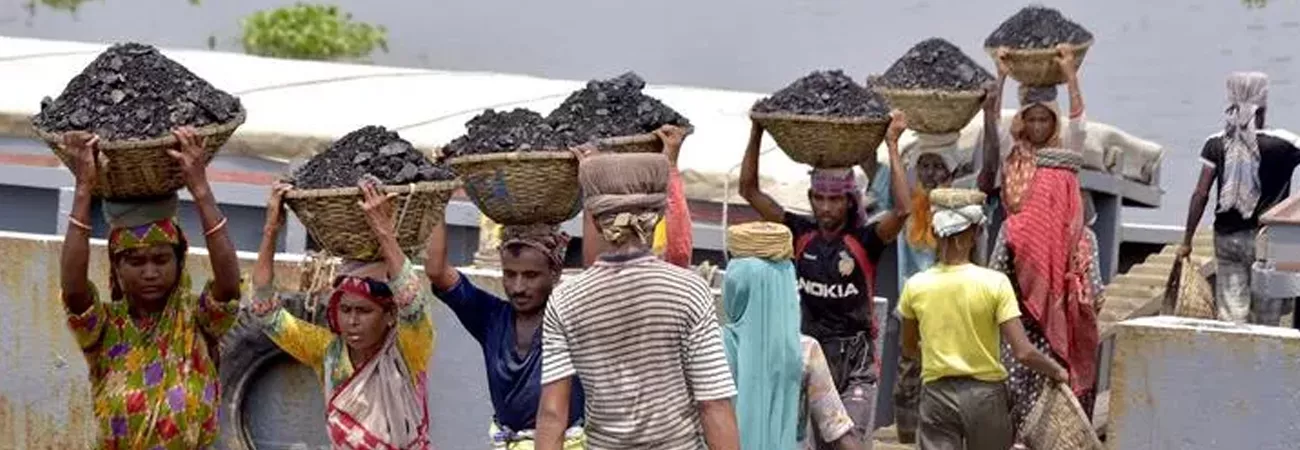 بنگلہ دیش کے دارلحکومت ڈھاکہ میں دریا کے کنارے پر ایک خاتون محنت کش کوئلے سے بھری ٹوکری اٹھائے ہوئے ہے۔(شِنہوا)