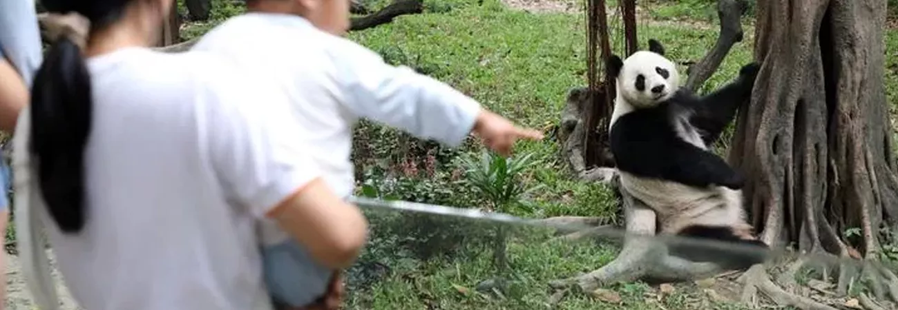 چین کے صوبہ گوانگ ڈونگ کے شہر گوانگ ژو میں واقع چھی می لونگ سفاری پارک میں سیاح بڑا پانڈہ دیکھ رہے ہیں۔  (شِنہوا)
