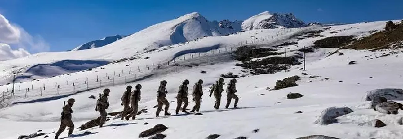 چین کے سنکیانگ ویغورخوداختیار خطے کے علاقے خنجراب میں فوجی گشت کررہے ہیں۔(شِنہوا)