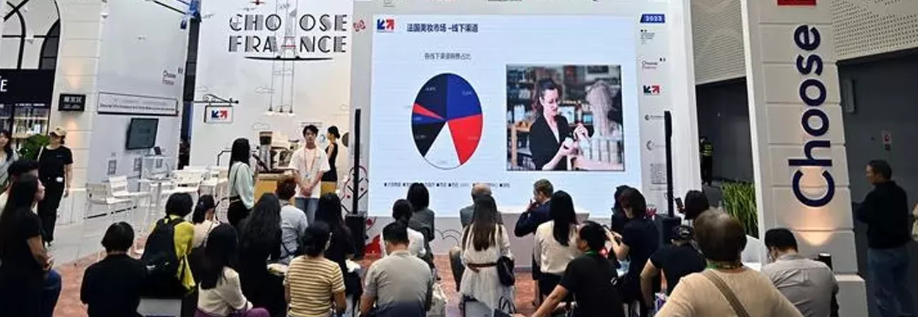 چین کے جنوبی صوبے ہائی نان کے شہر ہائیکو میں تیسری چائنہ انٹرنیشنل کنزیومر پروڈکٹس ایکسپو (سی آئی سی پی ای) میں فرانسیسی قومی پویلین میں ایک معلوماتی سیشن کا منظر۔(شِنہوا)