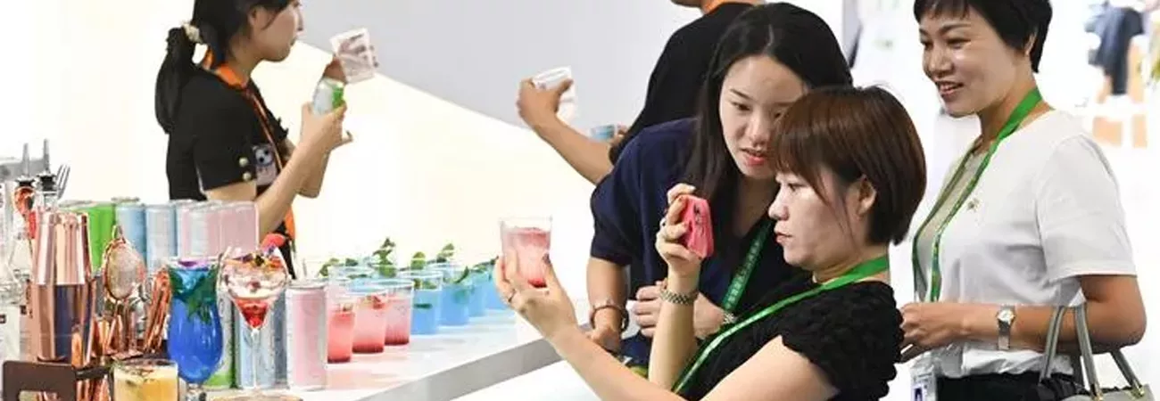 چین، جنوبی صوبہ ہائی نان کے صدر مقام ہائیکو میں منعقدہ تیسری چائنہ بین الاقوامی اشیائے صرف نمائش میں ایک سیاح مشروبات کی تصاویر بنا رہی ہے۔(شِنہوا)