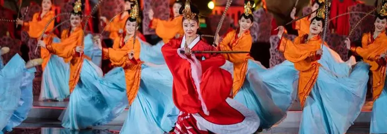 چین ، وسطی صوبہ ہوبے کے شہر جنگ ژو میں پہلے چھو ثقافتی میلے کی افتتاحی تقریب میں اداکارائیں فن کا مظاہرہ کررہی ہیں۔ (شِںہوا)