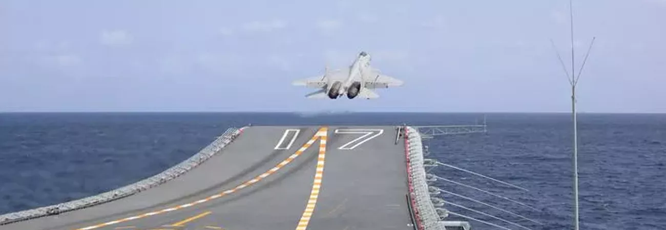 چین ، چینی پیپلز لبریشن آرمی کی مشرقی تھیٹر کمانڈ کی تائیوان جزیرے کے اطراف جنگی تیاریوں ، نگرانی اور فوجی مشقوں کے دوران طیارہ بردار جہاز شان ڈونگ سے ایک جے 15 لڑاکا طیارہ اڑان بھررہا ہے۔ (شِںہوا)