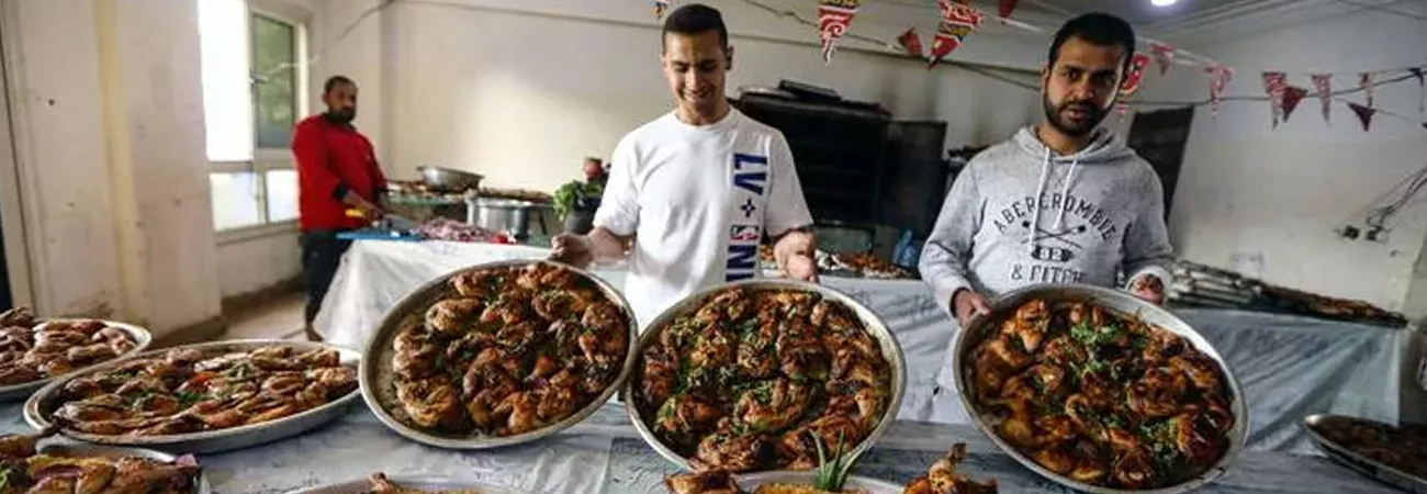 مصر، قاہرہ میں الرحمان کچن میں رضاکار افطار کے لئے کھانے پینے کی اشیا تیار کررہے ہیں۔(شِںہوا)