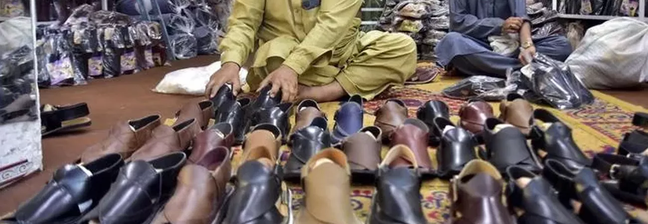 پشاور ، ایک کارخانے میں جوتے دیکھے جاسکتے ہیں۔ (شِںہوا)