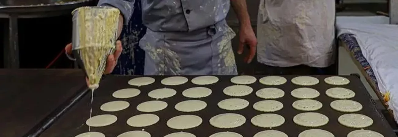 غزہ شہر کی مقامی مارکیٹ میں رمضان المبارک کے دوران ایک دکاندار روایتی مٹھائی تیار کررہا ہے۔ (شِنہوا)