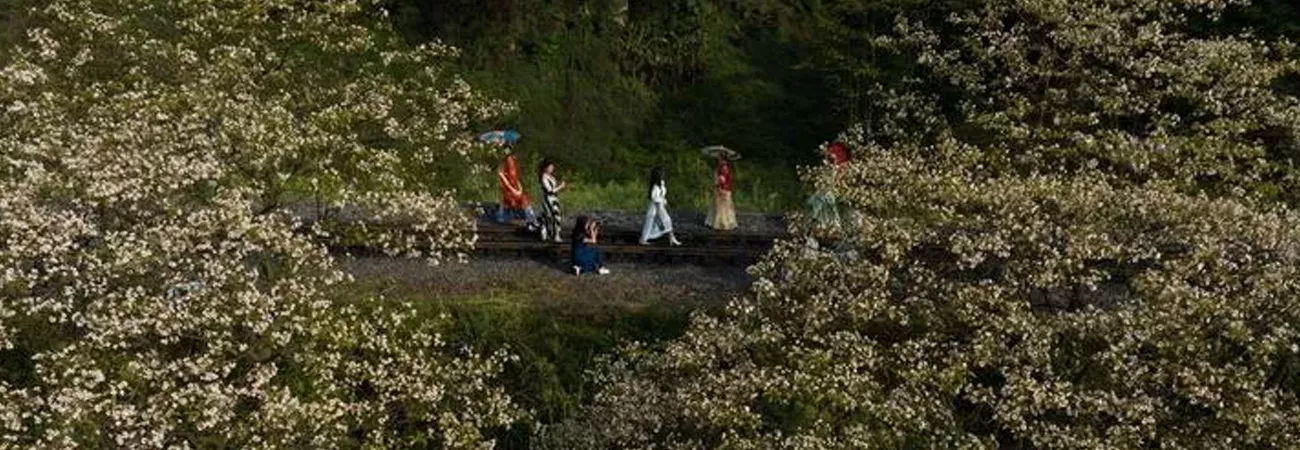 چین ، جنوب مغربی صوبہ سیچھوان کے شہر لی شان کی کاؤنٹی جیان وائی کے لیانگ شوئی تو اسٹیشن سے بھاپ کے انجن سے چلنے والی ٹرین گزرہی ہے۔ (شِنہوا)