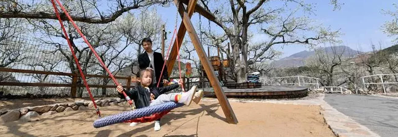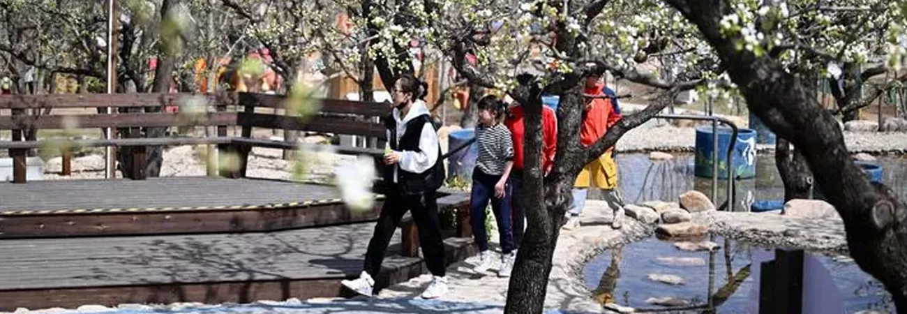 چین ، شمالی شہر تیان جن کے ضلع جی ژو کے قصبہ شیا ینگ کے گاؤں توان شان زی کے ایک باغ میں سیاح تفریح کررہے ہیں۔ (شِںہوا)