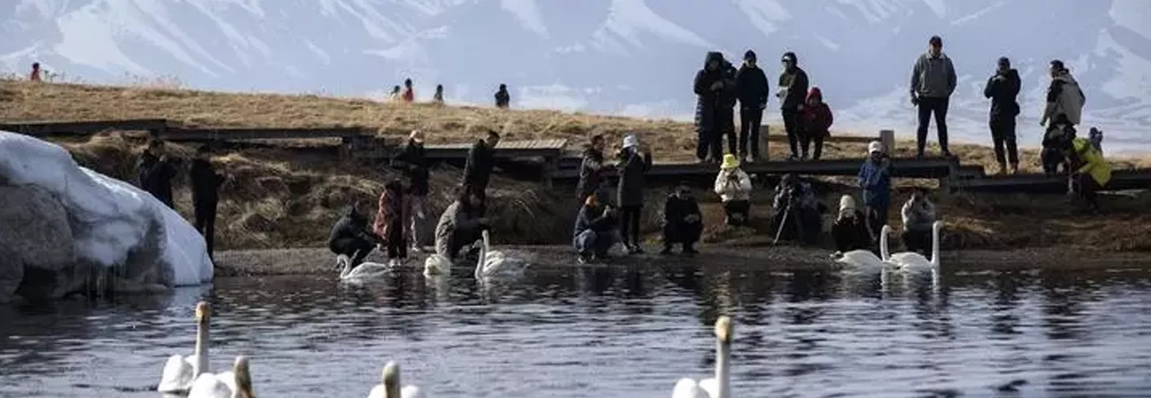 چین کے سنکیانگ ویغور خوداختیار خطے کے بورتالا منگولین خوداختیار پریفیکچر میں سیاح سیرم جھیل کی تصاویر بنا رہے ہیں۔(شِںہوا)