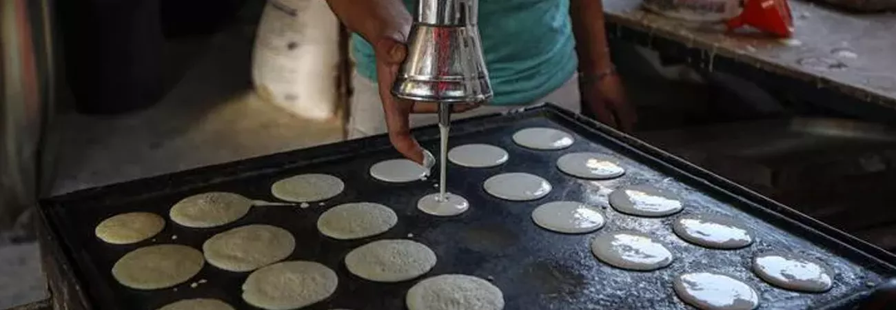 مصرکے دالحکومت قاہرہ میں رمضان المبارک میں فروخت کے لیے ایک دکاندار روایتی میٹھے قطائف بنا رہا ہے۔(شِنہوا)