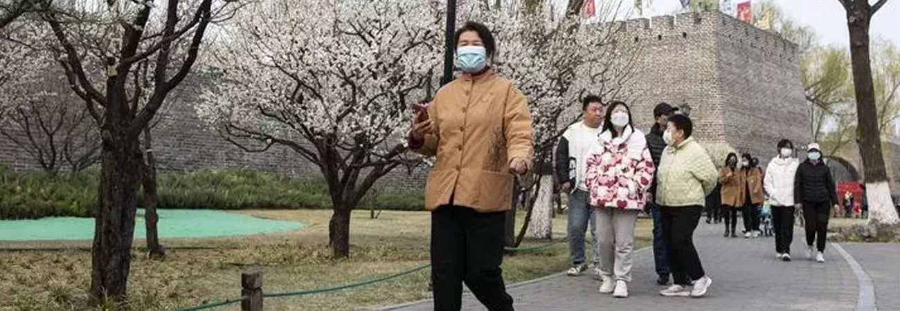 چین، دارالحکومت بیجنگ میں سیاح منگ سٹی وال سائٹ پارک میں کھلتے پھولوں کا نظارہ کررہے ہیں۔ (شِںہوا)