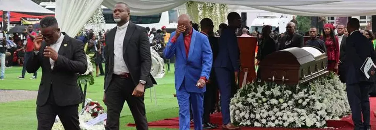 گھانا کے شہراڈا میں گھانا کے آنجہانی فٹ بالر کرسچن اتسو تواسام کے آبائی شہر میں لوگ انکی آخری رسومات میں شریک ہیں۔(شِنہوا)