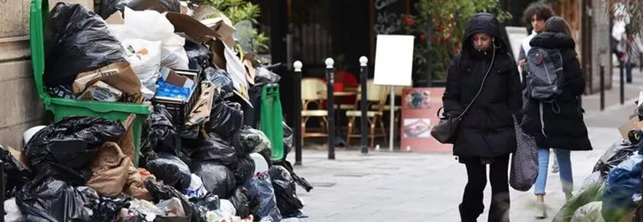 فرانس کے شہر پیرس کی سڑک پر چھوڑے گئے کچرے کے ڈبوں کے پاس سے لوگ گزر رہے ہیں جہاں کچرا جمع کرنے اورگلیوں کی صفائی کرنے والے 20 مارچ تک ہڑتال پر رہیں گے۔(شِنہوا)
