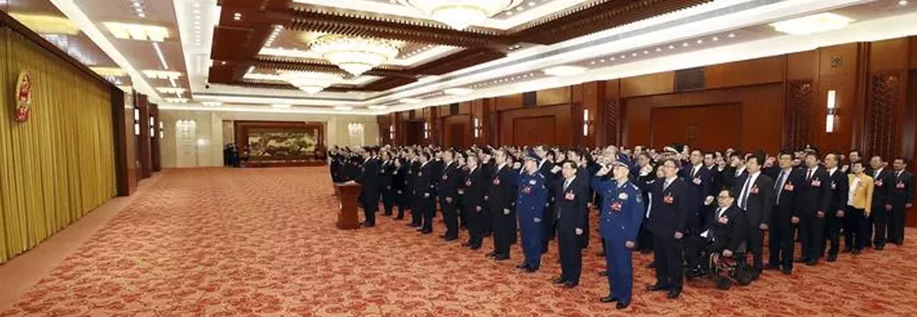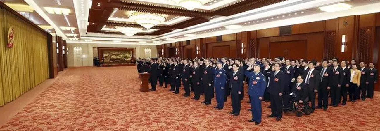 چین، دارالحکومت بیجنگ میں 14 ویں قومی عوامی کانگریس کی قائمہ کمیٹی کے ارکان آئین سے وفاداری کا عہد کررہے ہیں۔(شِنہوا)