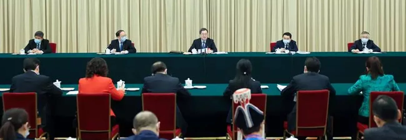 چین ، دارالحکومت بیجنگ میں 14 ویں قومی عوامی کانگریس کے پہلے سیشن میں کمیونسٹ پارٹی آف چائنہ کی مرکزی کمیٹی کے سیاسی بیورو کی قائمہ کمیٹی کے رکن ژاؤ لی جی نے ہانگ کانگ خصوصی انتظامی خطے سے  تعلق رکھنے والے نائبین کے ساتھ گروپ غوروخوض میں حصہ لیا۔ (شِںہوا)