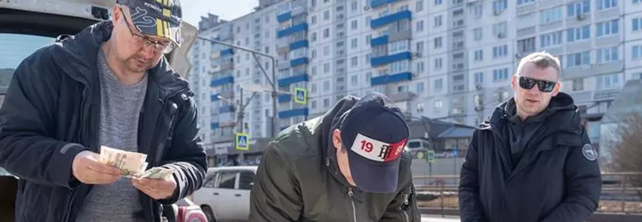 روس کے شہرولادی ووستوک میں خواتین کے عالمی دن کے موقع پر سڑک پر ایک شخص پھول خرید رہا ہے۔(شِنہوا)
