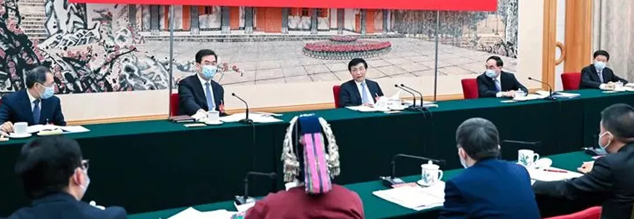 چین ، دارالحکومت بیجنگ میں منعقدہ 14 ویں قومی عوامی کانگریس کے پہلے اجلاس میں کمیونسٹ پارٹی آف چائنہ کی مرکزی کمیٹی کے سیاسی بیورو کی قائمہ کمیٹی کے رکن وانگ ہو ننگ نے صوبہ گوئی ژو کے نائبین کے ساتھ غورو خوض میں حصہ لیا۔ (شِنہوا)
